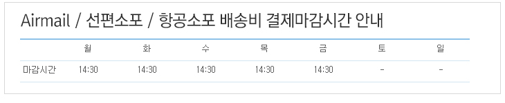 Airmail 및 소포는 우체국에서 저녁에 일괄 운송처리를 진행하기에 오후 1회 출고진행합니다.