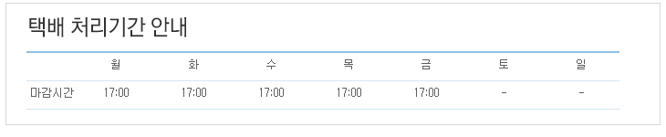 금요일 오후 5시 이후 입고된 택배는 월요일에 처리됩니다.